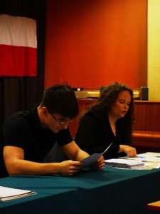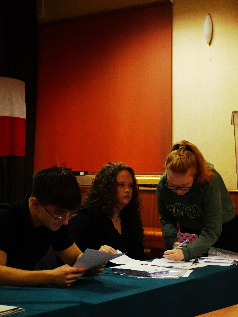 Nad sprawnym przebiegiem głosowania czuwali członkowie Komisji Wyborczej Dominika Męciwoda i Kacper Raban z p. Dariuszem Kaszubą.