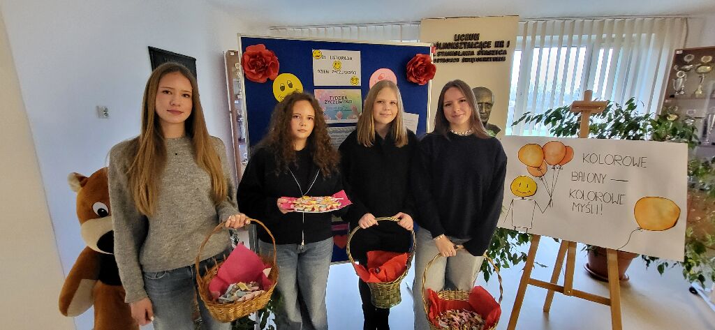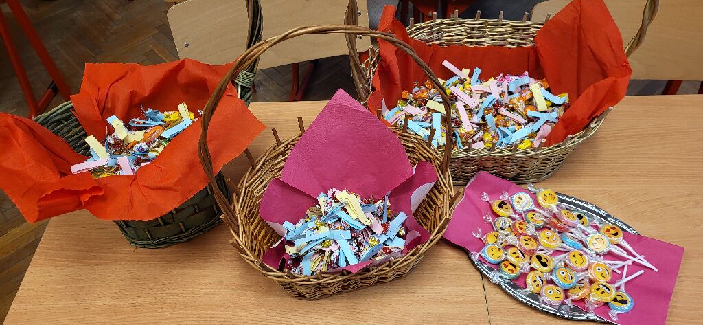 Wszyscy uczniowie zostali poczęstowani cukierkami z dołączonymi karteczkami zawierającymi krótkie, życzliwe sentencje. Nauczyciele również otrzymali słodki upominek — lizaki z emotikonami, które wywołały wiele uśmiechów i pozytywnych reakcji.