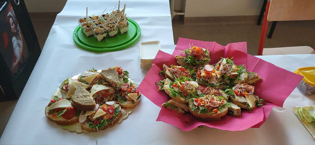 Na stoiskach można było spróbować kolorowych, zdrowych przekąsek przygotowanych własnoręcznie przez uczniów – od owocowych szaszłyków i warzywnych wrapów, po pełnoziarniste muffinki i koktajle.