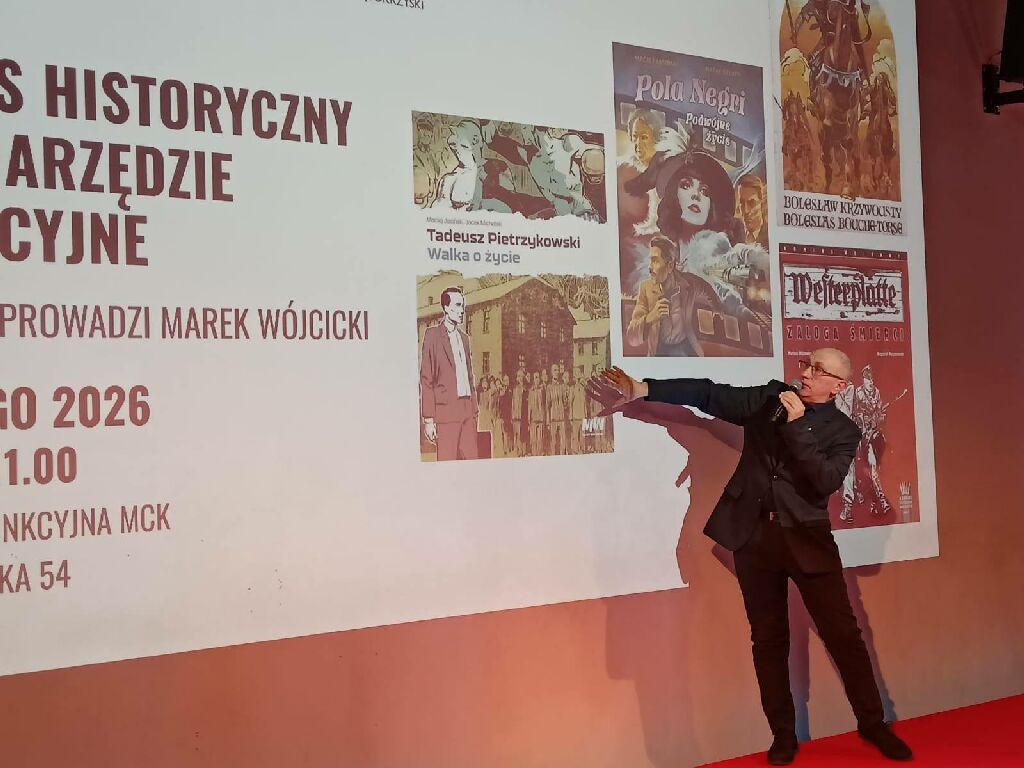 Marek Wójcicki opowiadał o tym, jak narracja obrazkowa może wspierać proces dydaktyczny, angażować młodych odbiorców i ułatwiać zrozumienie złożonych wydarzeń z przeszłości.