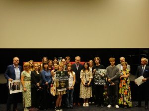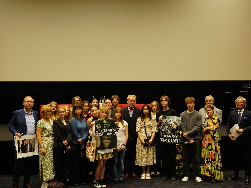 W spotkaniu z Mirosławem Baką, które odbyło się w sali kinowej OBK, wzięła udział dyr szkoły p. Dorota Waliszczak, grupa uczniów klasy 3B oraz kilkoro tegorocznych absolwentów.