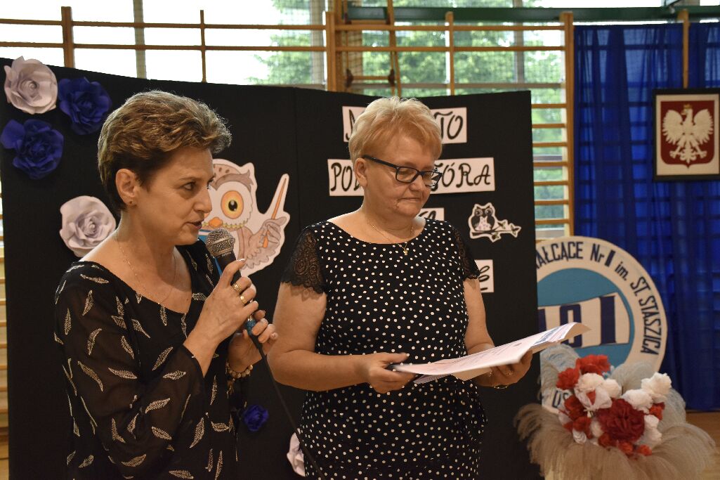 Rodziców, uczniów, wychowawców, nauczycieli oraz zaproszonych gości przywitała dyrektor szkoły Dorota Waliszczak oraz wspłóprowadzący uroczystość.